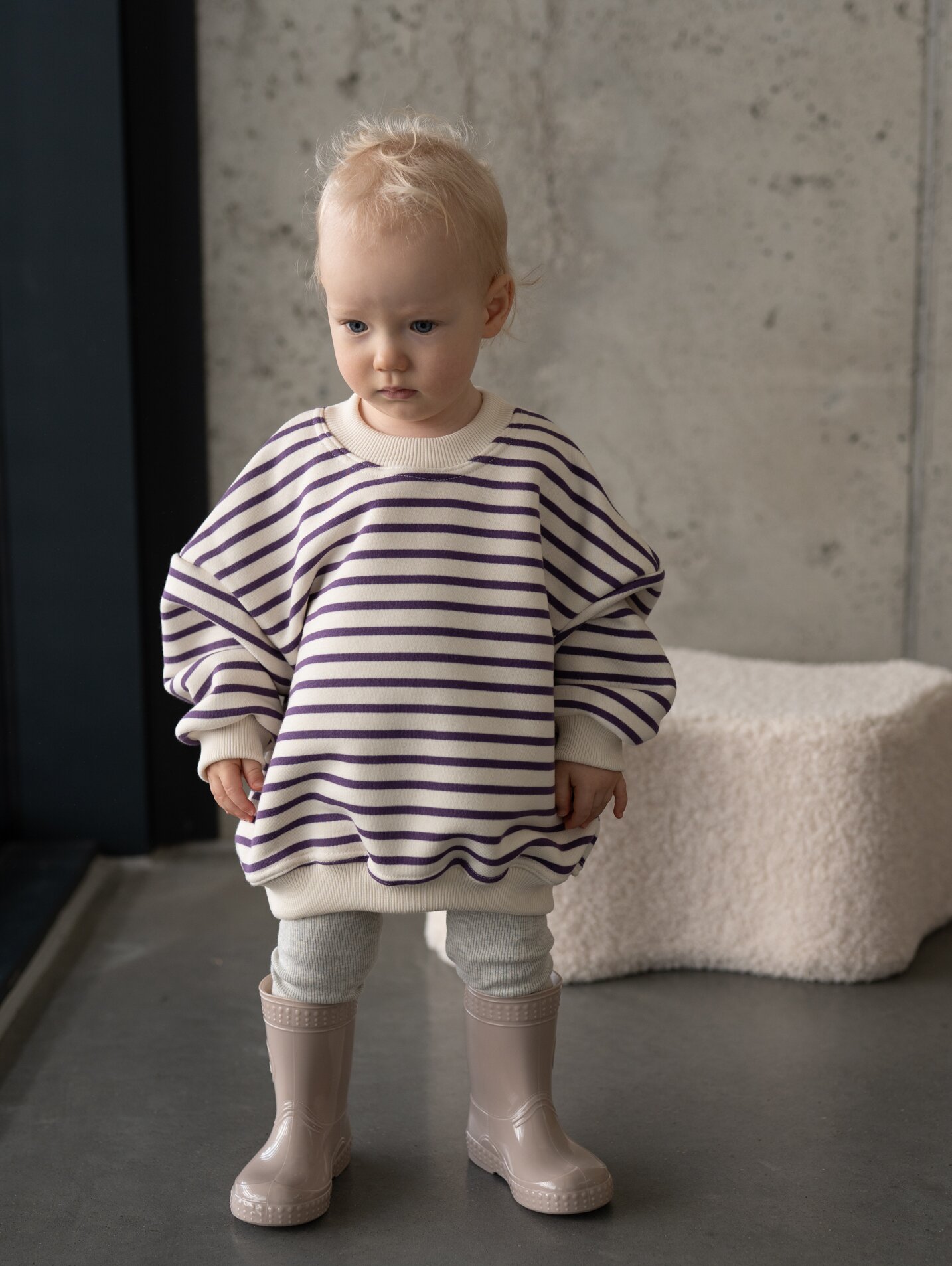 - naturalnie sprany i ponadczasowy, idealny do minimalistycznej dziecięcej garderoby
