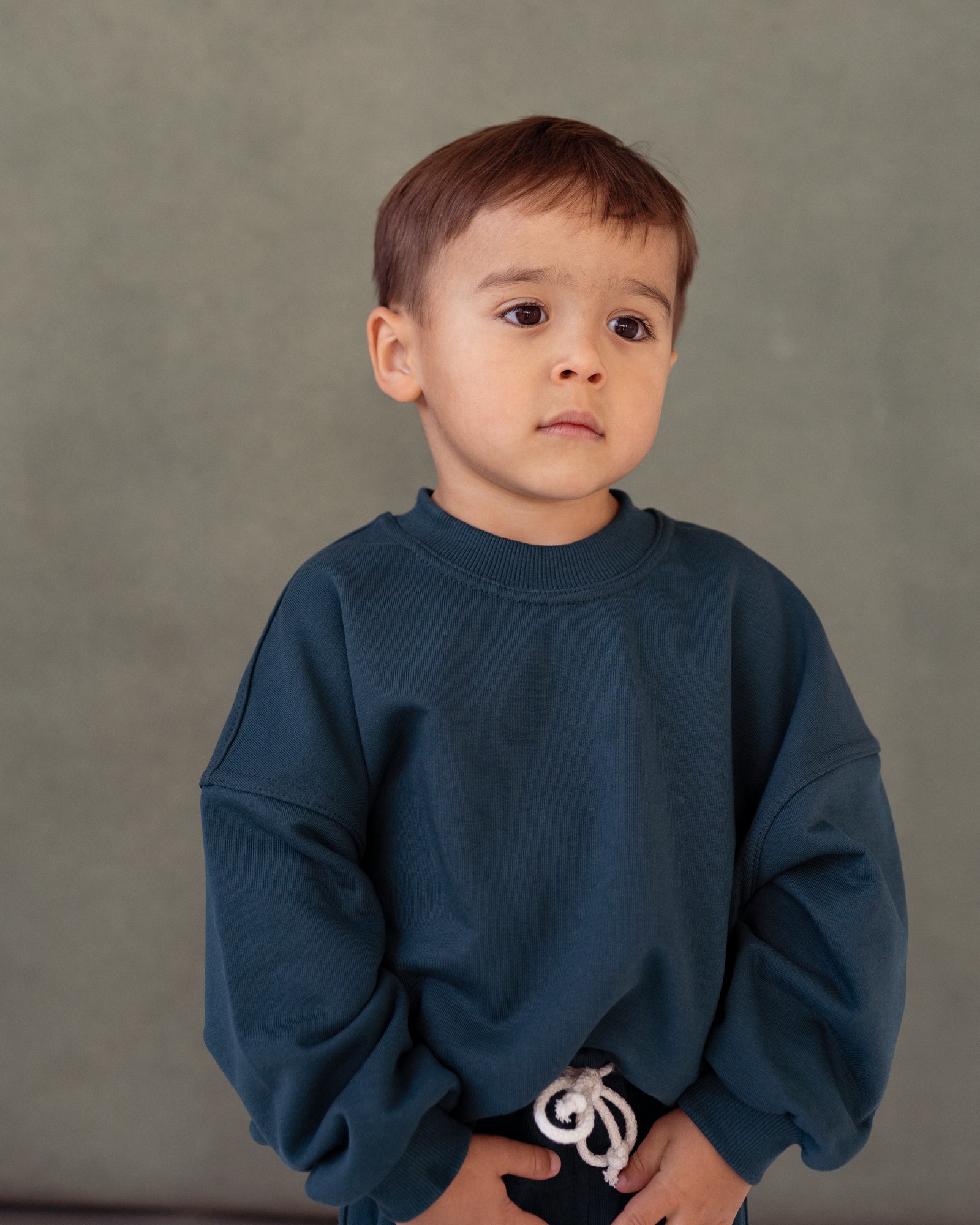 Bluza dziecięca oversize w kolorze głębokiej zieleni to must have w kapsułowej szafie malucha. Uszyta z przyjemnej, mięsistej dzianiny dresowej, która otula i daje komfort noszenia na co dzień. Materiał posiada certyfikat OEKO-TEX®, co oznacza, że jest całkowicie bezpieczny dla delikatnej skóry dziecka – wolny od szkodliwych substancji i przyjazny środowisku.