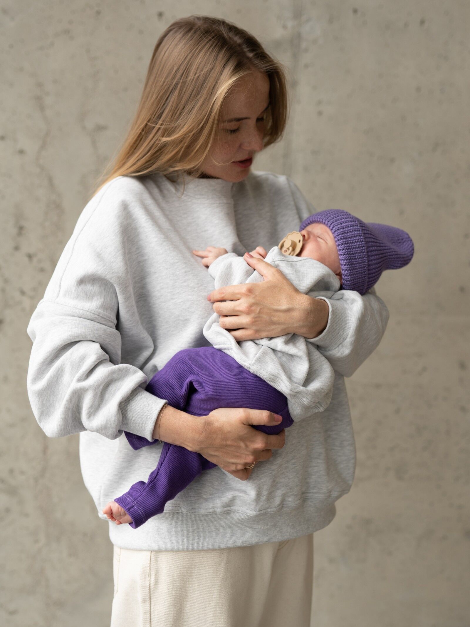 Luźny krój oversize sprawia, że bluza pasuje zarówno do jeansów, jak i spodni dresowych, tworząc wygodne, codzienne stylizacje. To model, który łączy komfort, bezpieczeństwo i ponadczasowy design. Bluza dostępna jest również w wersji dla mam, co daje możliwość stworzenia wyjątkowego zestawu matchy-matchy mama i dziecko.