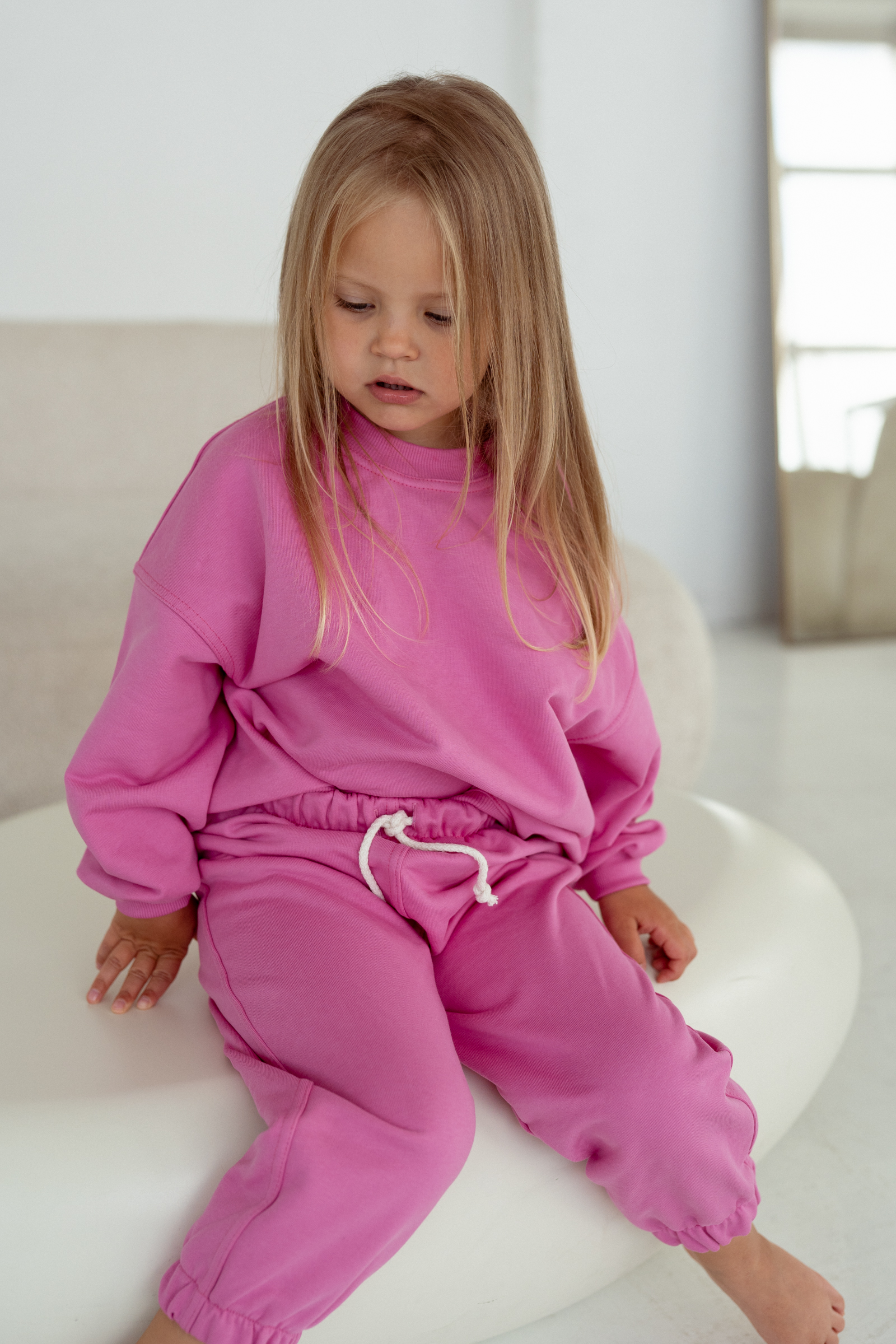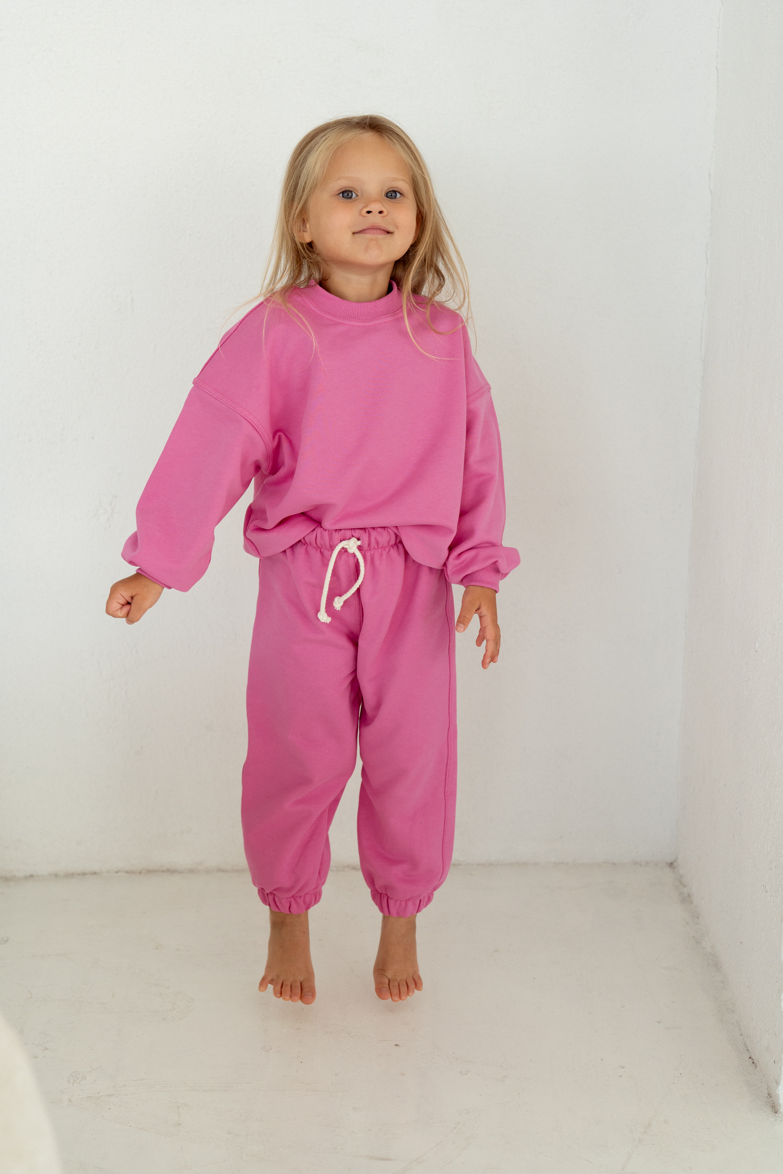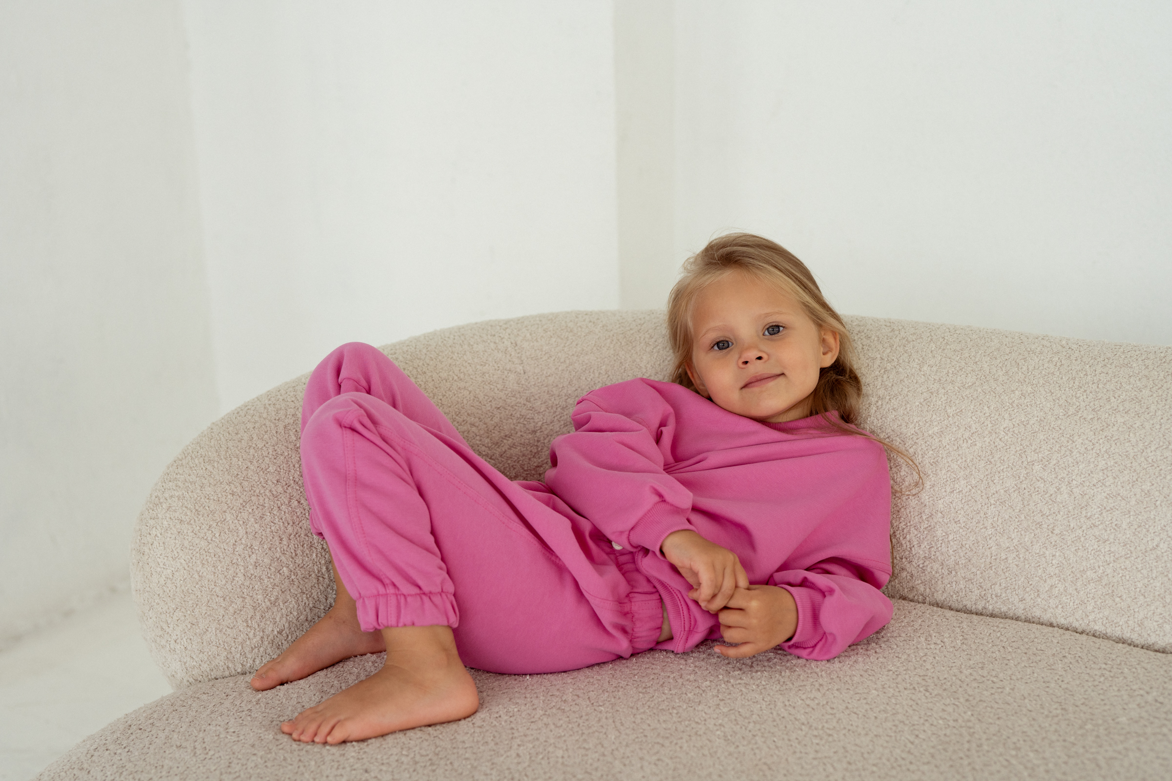 Spodnie możesz połączyć z bluzą oversize w tym samym kolorze, tworząc praktyczny komplet dresowy – idealny na spacer, przedszkole czy domowe aktywności. Całość szyta jest w polskiej, lokalnej szwalni, co oznacza najwyższą jakość, dbałość o detale i wsparcie dla małych, rodzimych firm.