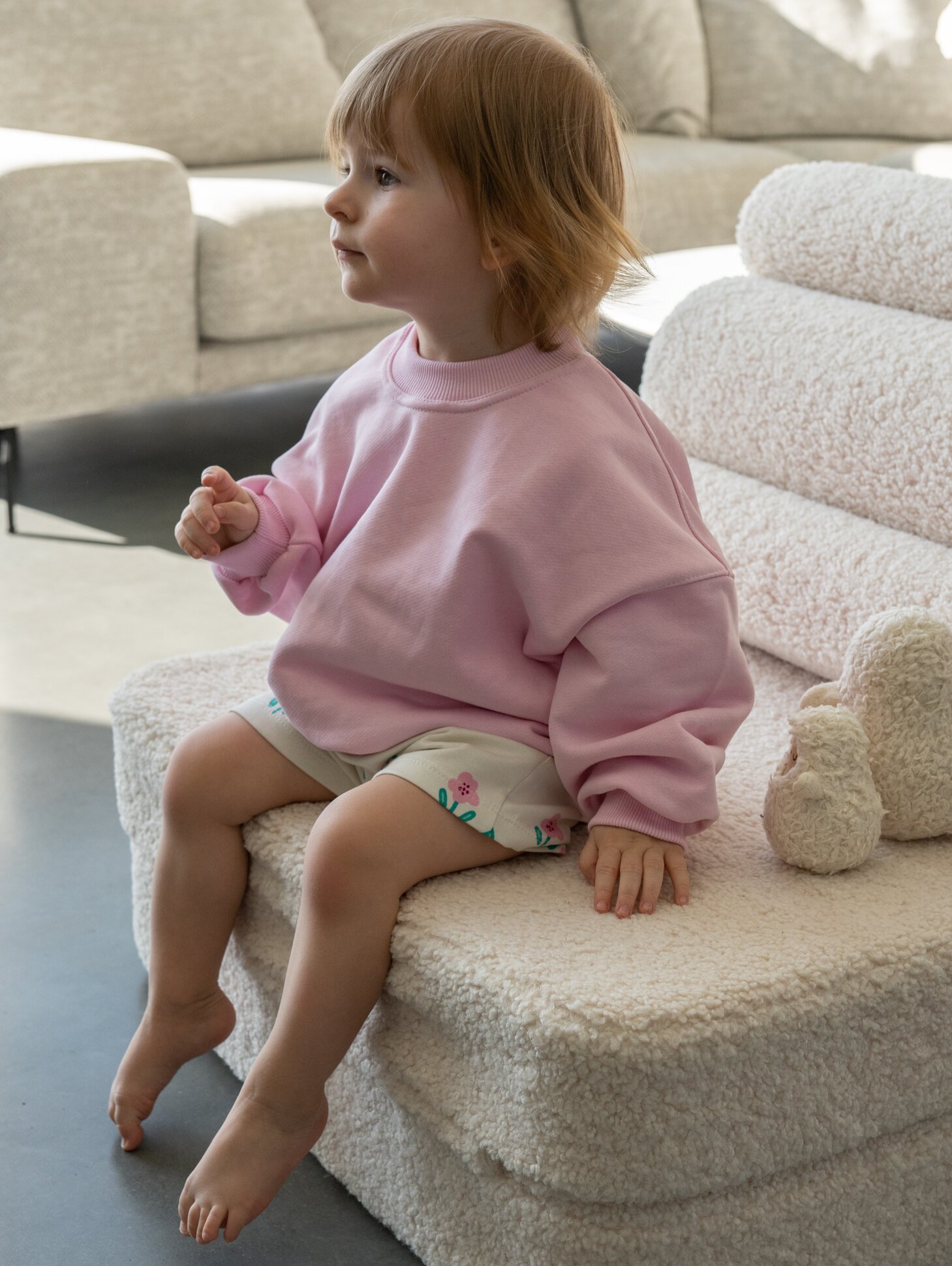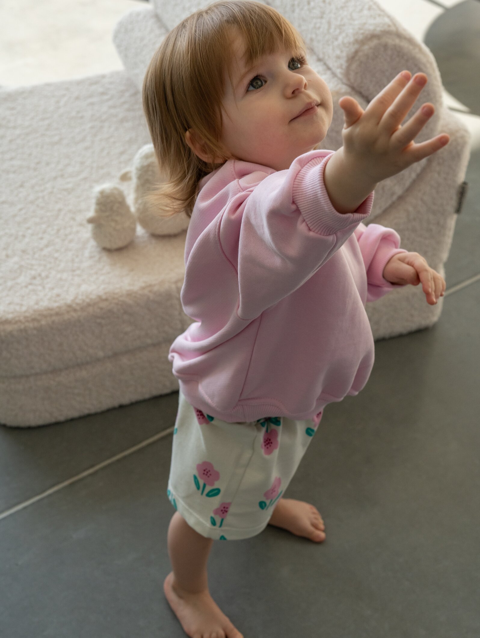 Letnie szorty w uroczy, kwiatowy wzór to idealne połączenie funkcjonalności i subtelnej estetyki. Uszyte z cienkiej, oddychającej dzianiny dresowej, zapewniają maksymalny komfort nawet podczas upalnych dni – są lekkie, miękkie i delikatne dla skóry dziecka. Elastyczna gumka w pasie z dodatkową regulacją na sznurek pozwala idealnie dopasować szorty do sylwetki, dając swobodę ruchu i pewność, że nic się nie zsuwa podczas zabawy.
