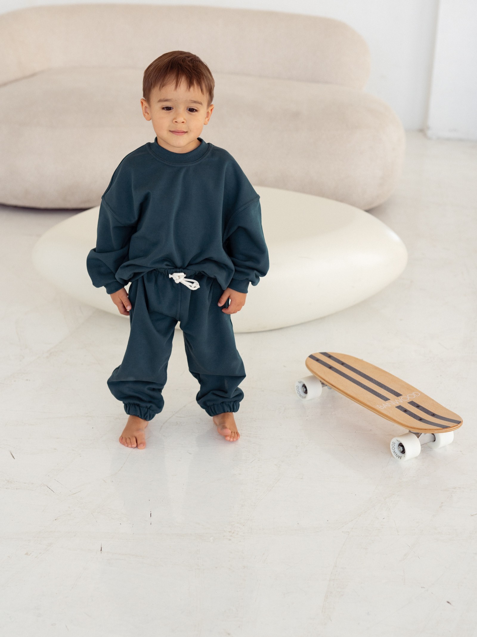 Luźny, oversize’owy krój zapewnia swobodę ruchów, a elastyczne ściągacze dbają o wygodę i utrzymują bluzę w idealnym kształcie nawet po wielu praniach. Możesz stworzyć komplet dresowy – do bluzy dopasujesz spodnie w tym samym odcieniu, co ułatwi szybkie stylizacje do przedszkola, szkoły czy na spacer.